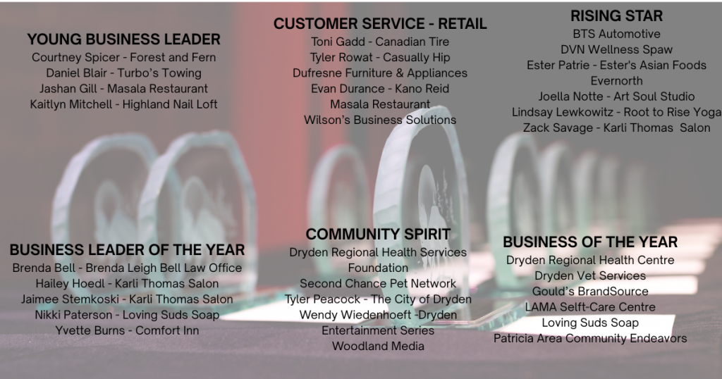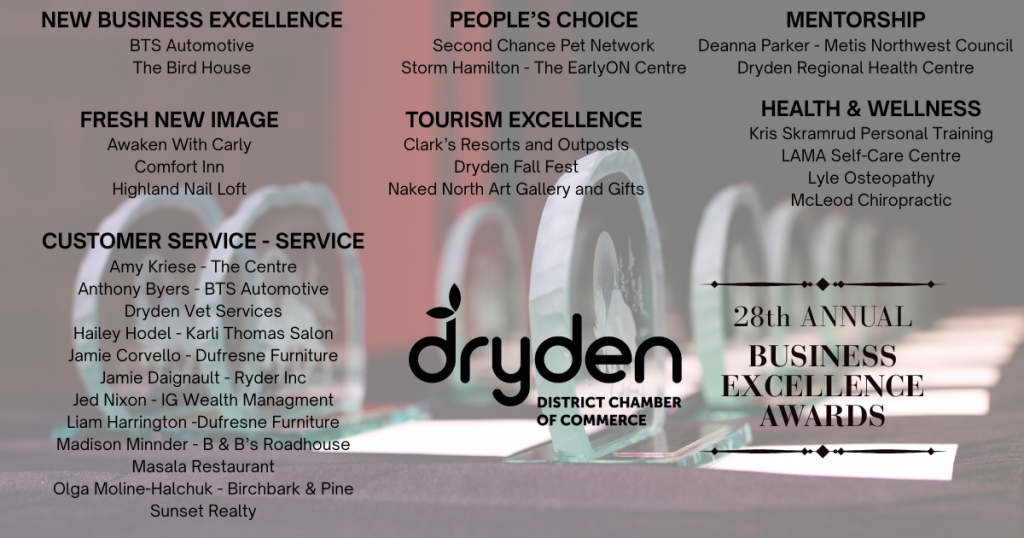 We’re thrilled to recognize this year’s outstanding nominees for their dedication, innovation, and commitment to excellence in our local business community. Each of you has made a meaningful impact, and your nomination is a testament to the value you bring to Dryden and the surrounding region.